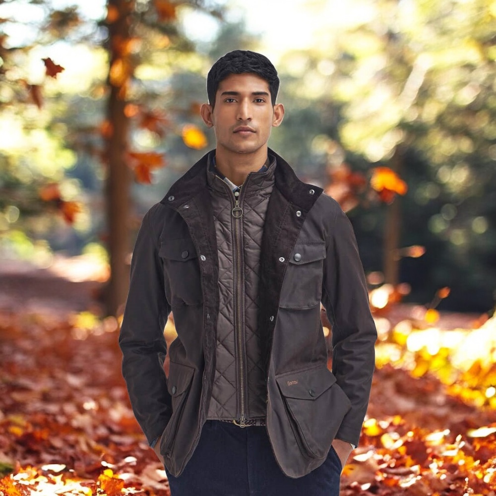 Smart and stylish, the Ogston is a hard-working jacket cut for a relaxed, masculine fit and crafted in Barbour’s heavyweight Oban waxed cotton, which offers robust weather defence with a suede-like matte finish. An integral quilted vest creates an outdoorsy look and provides an extra layer of warmth, fastening through to a stand collar with a Barbour branded zip. The outer jacket itself adds yet more practicality with hardy stud fastenings and four roomy pockets, plus distinctive details including leather elbow patches corduroy facings. The luxurious wool-mix lining adds an air of elegance and refinement to this rugged winter jacket.