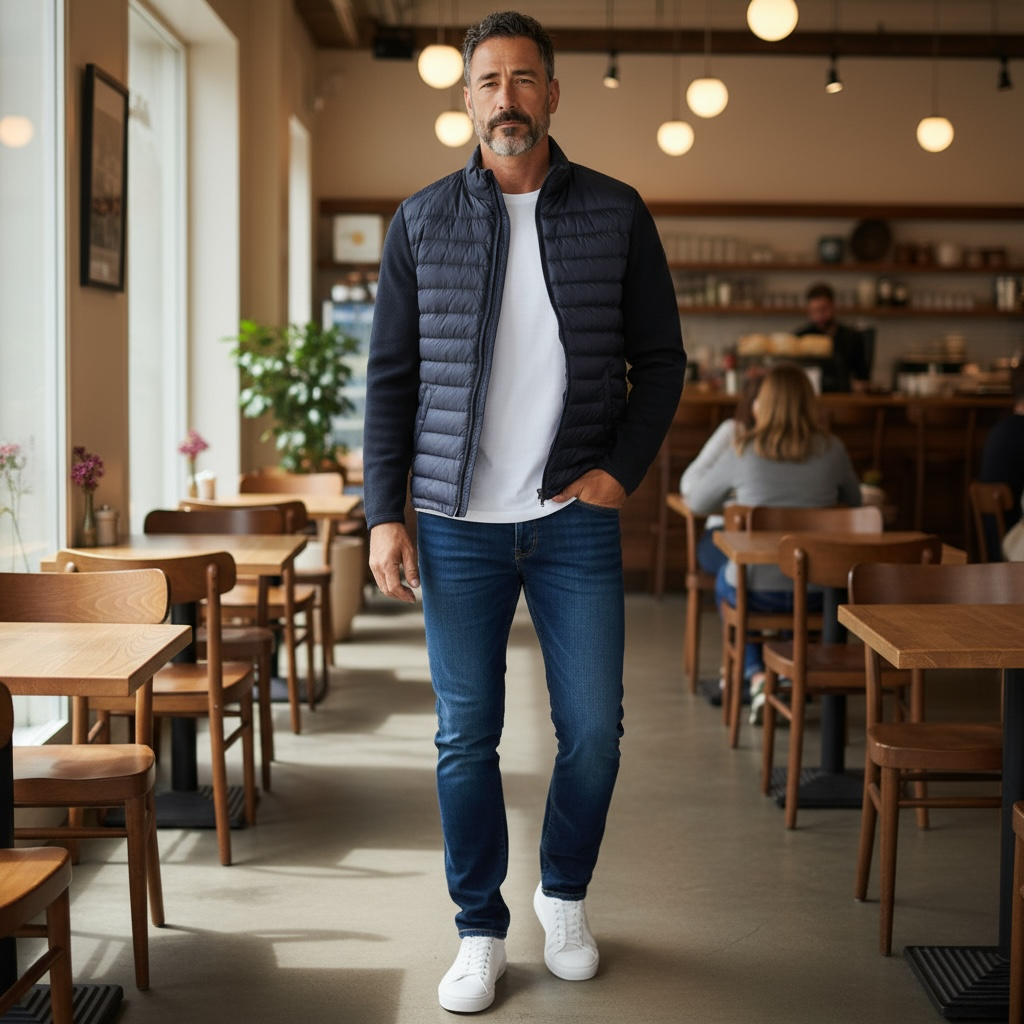 Crafted with a mixed media design, this jacket features channel quilting at the body and knitted wool-blend sleeves for a modern look. Cut for a regular fit, it is constructed with front zip closure, side zip pockets, a drawstring hem and a silicone badge placed at the sleeve. Fully lined, it is designed with a lightly insulated interior and an additional pocket