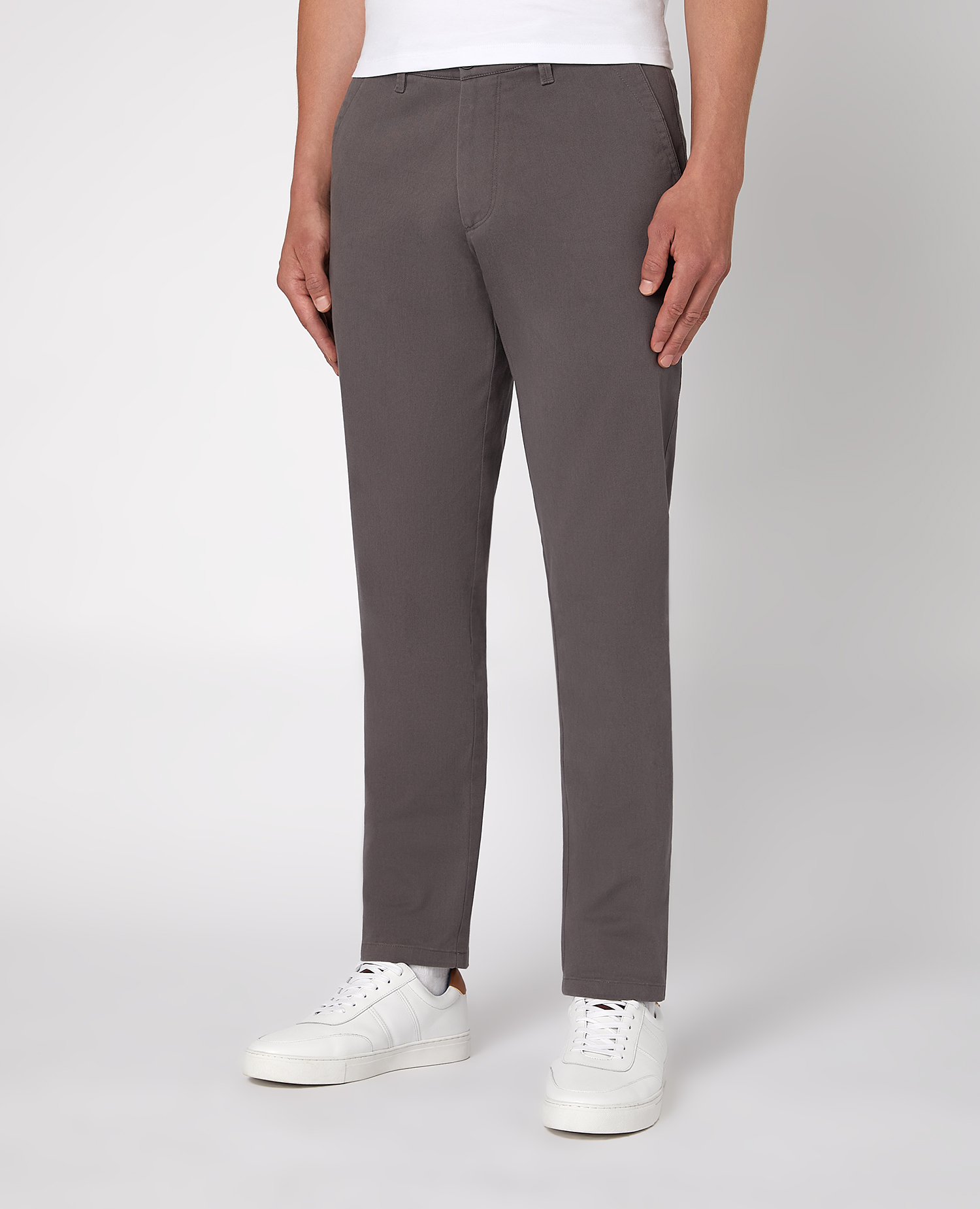 Anthracite slim leg cotton-stretch garment washed chino with zip fly and feature button.